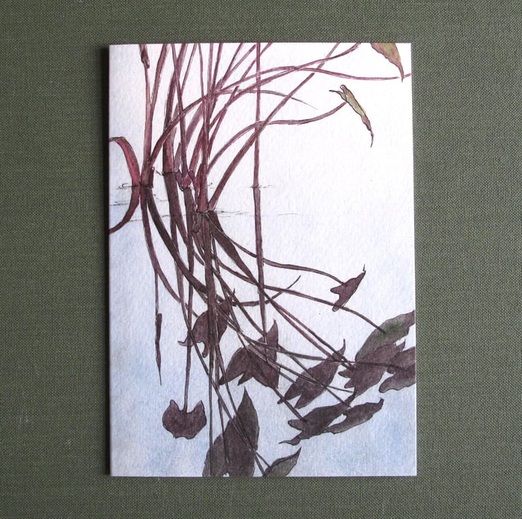 Blank greeting card. Original art work by Ann Robertson. Printed on high quality Tintoretto Gesso paper with a hammered finish. A6 width 10.5 cm height 14.8 cm. Side fold. Plain white envelope.