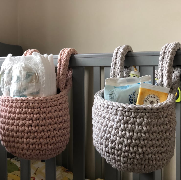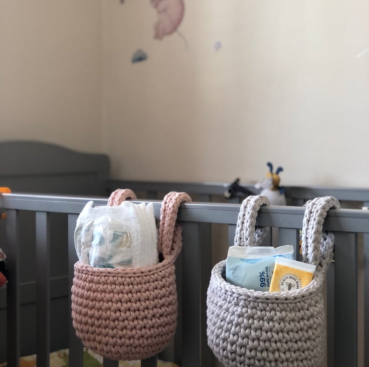It is always something to store, when you have a little “munchkin”. The perfect way to have all your essentials near, when needed- hanging cod bed baskets. For nappies, wet wipes, powder, cream sets… even just for a decoration or to keep small toys…