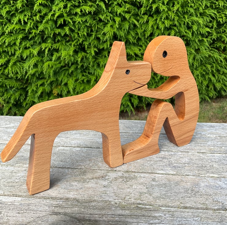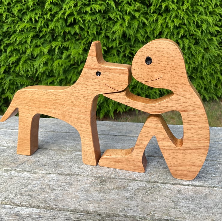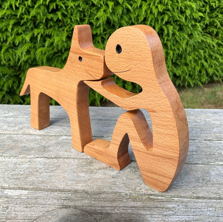 A cute wooden ornament of man and his favourite hound - makes a lovely gift for any dog lover.