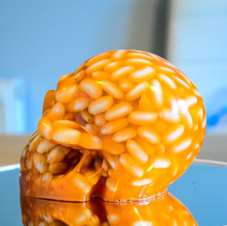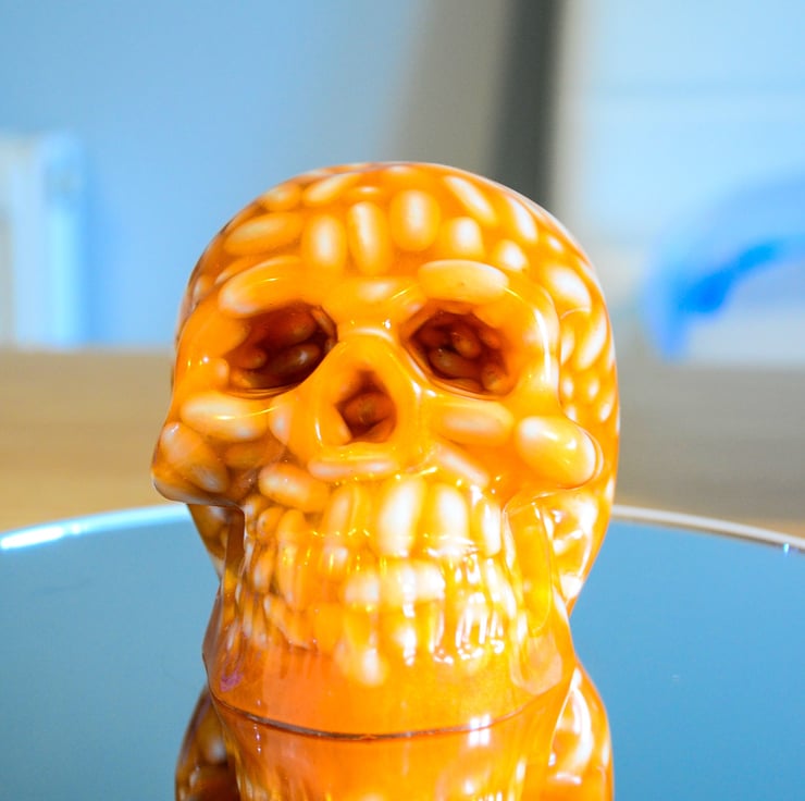 Baked Bean Lovers Resin Skull Ornament.