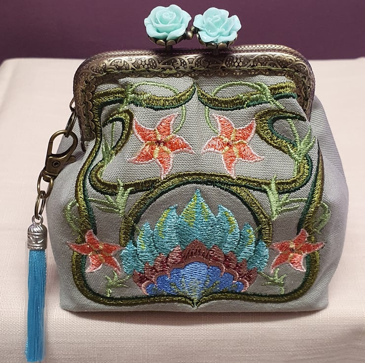Art Nouveau floral square design purse.