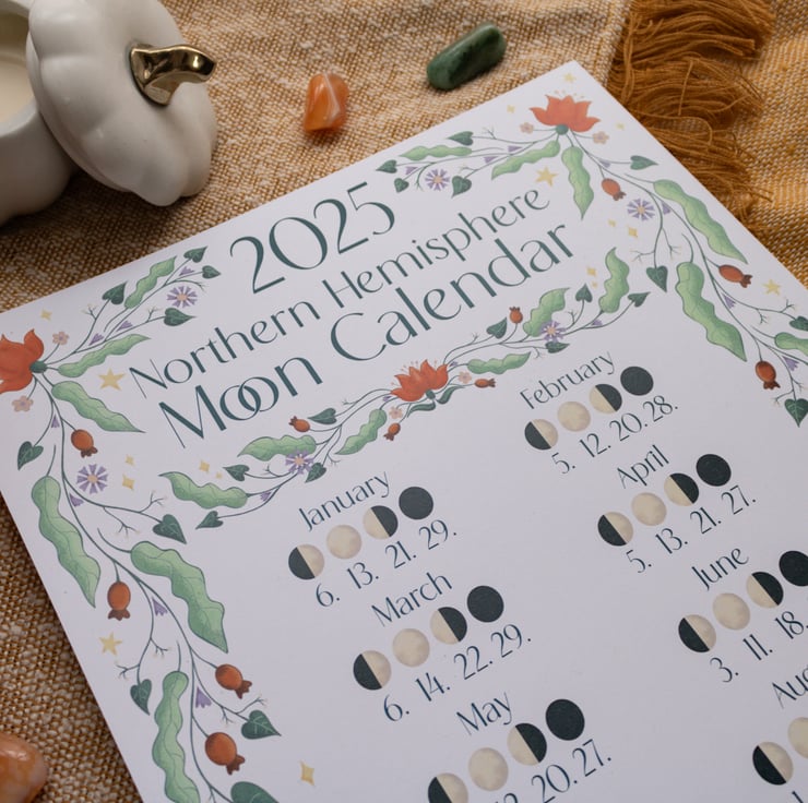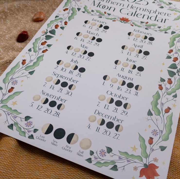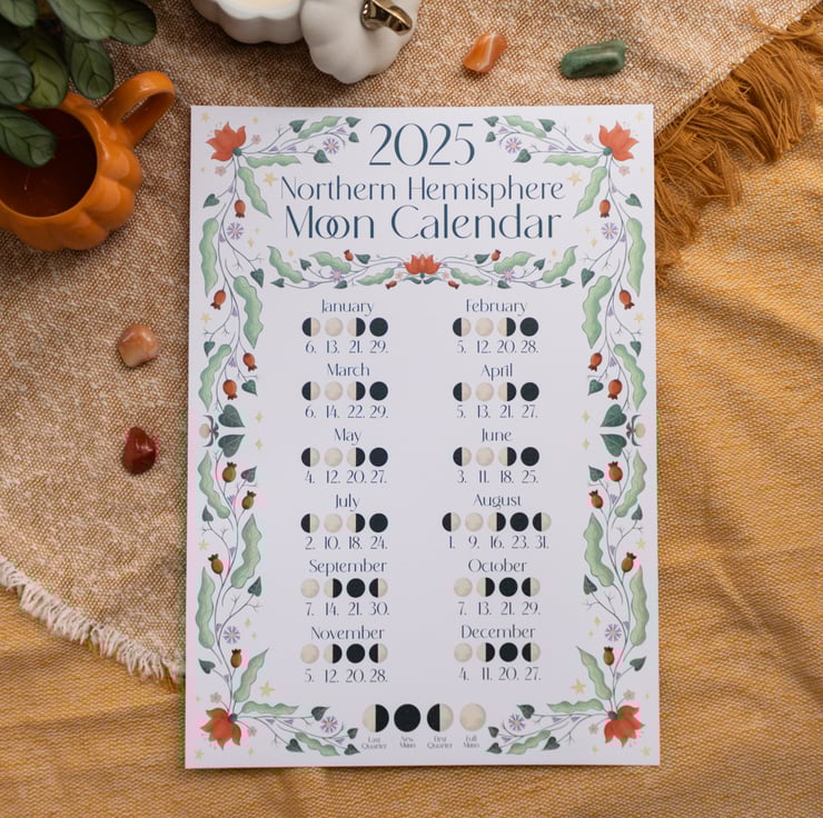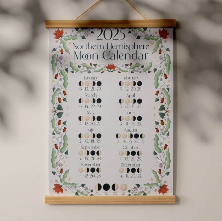 Stay in touch with the moon throughout 2025 with our large illustrated Moon Calendar print.