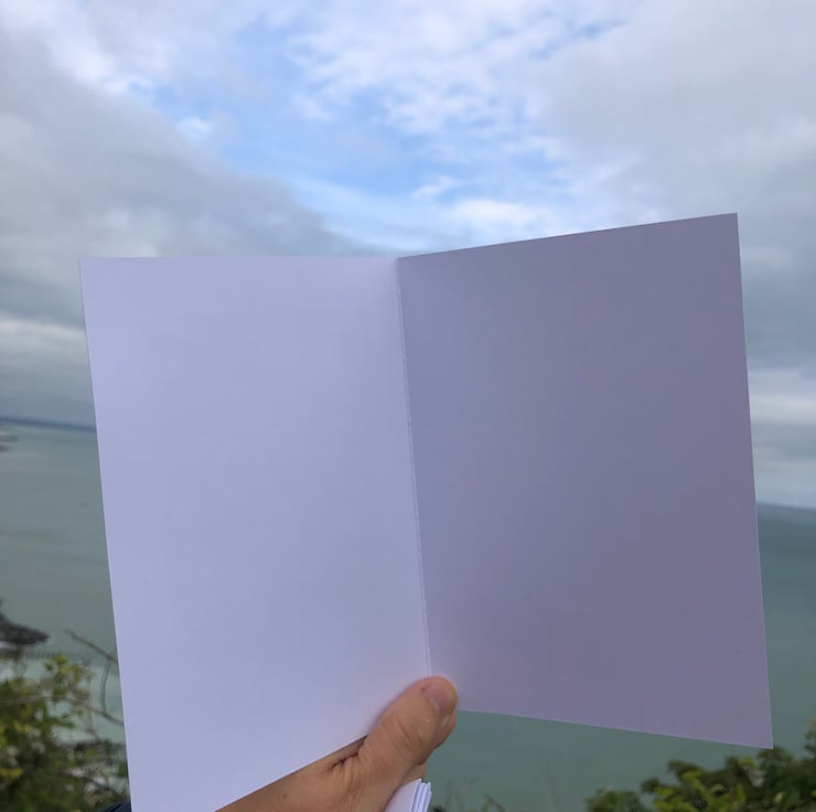 The card is blank inside and reads ‘Thinking of you and sending love’ on the outside.