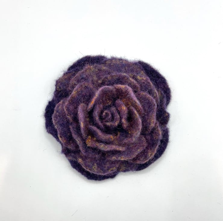The rose flower brooch is handmade by me in wet felting technique with gentle olive soap and warm water. It is made of merino wool.