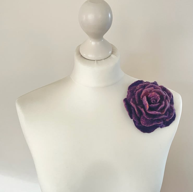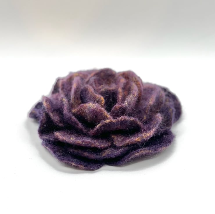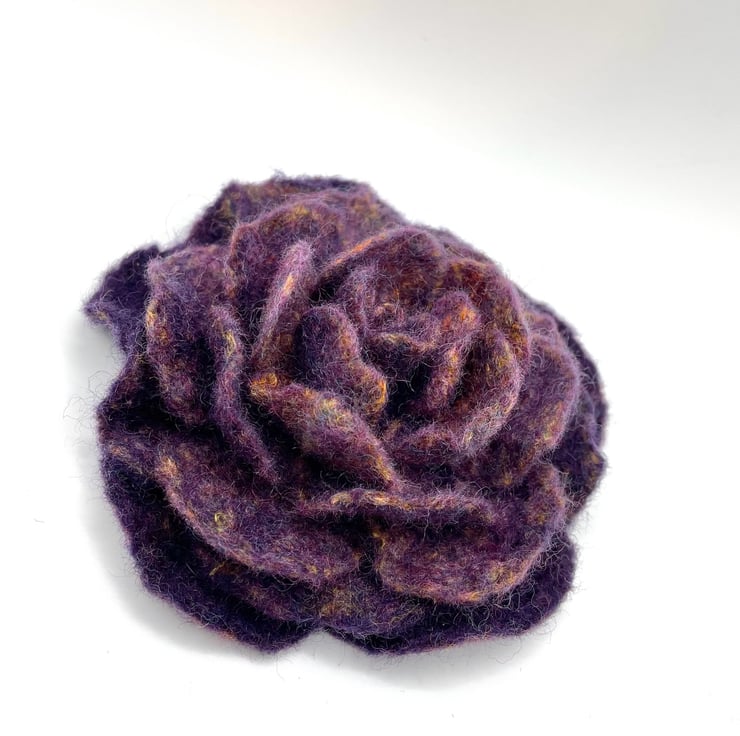 The rose flower brooch is handmade by me in wet felting technique with gentle olive soap and warm water. It is made of merino wool.