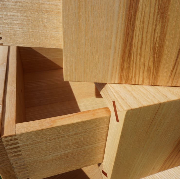 Inspired by Art deco furniture I wanted to create a show stopper piece that you will almost never see again. Using joinery and local English Ash I created a spiral of drawers destined to belong in your home.