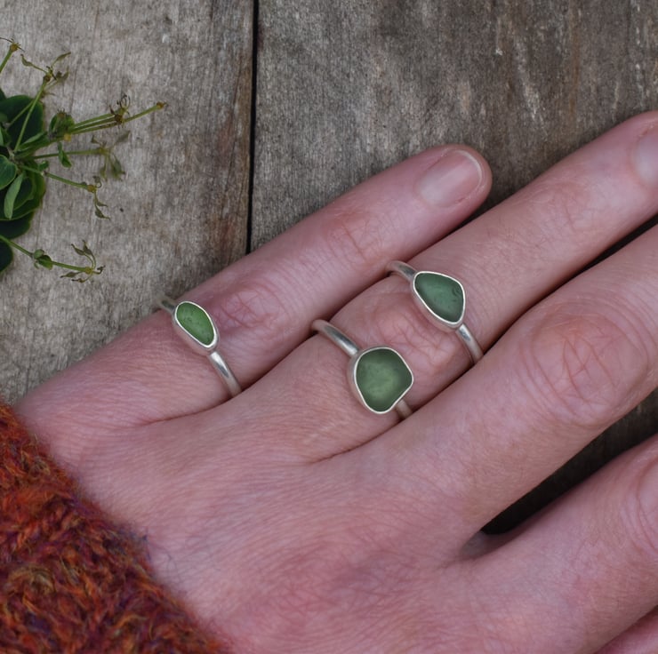Care instructions: To prevent water getting under the sea glass, it's advisable to remove the ring when washing your hands etc.
