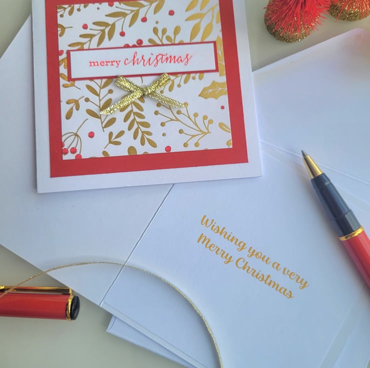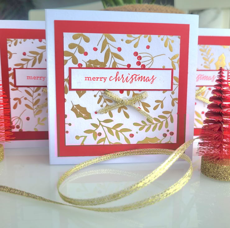 The inside of each card has been finished off with a “wishing you a very Merry Christmas” sentiment and are supplied with plain white handmade envelopes.