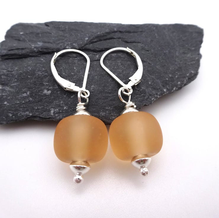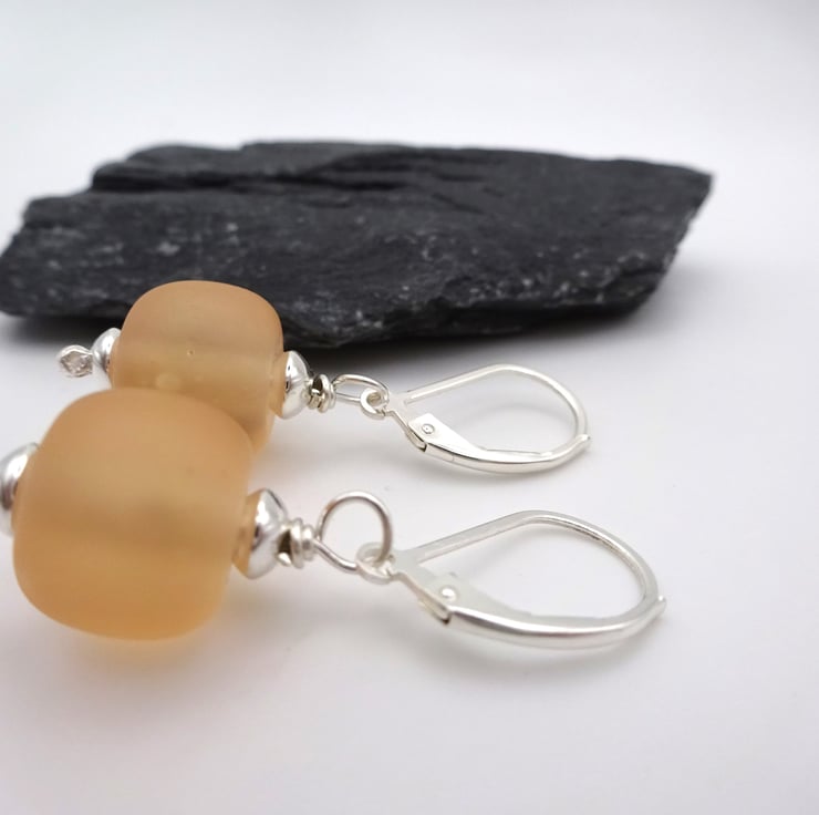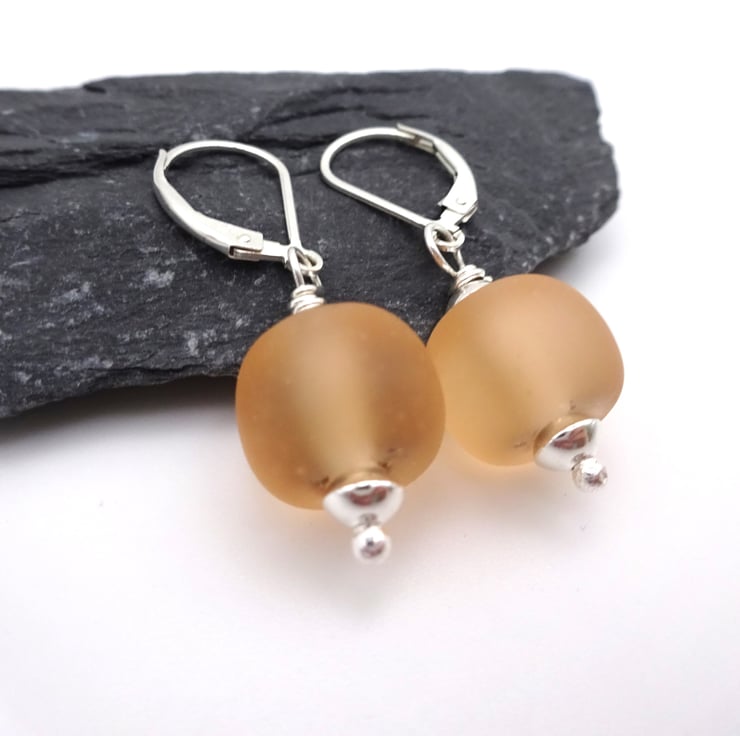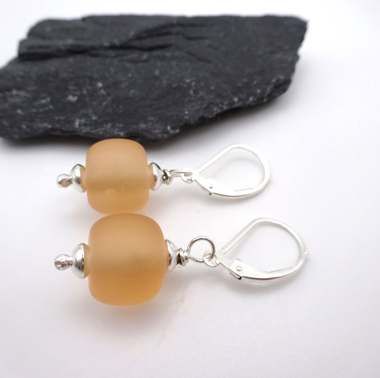 They feature handmade lampwork peach glass beads strung onto sterling silver lever back ear wires.