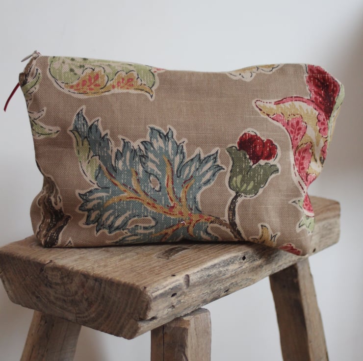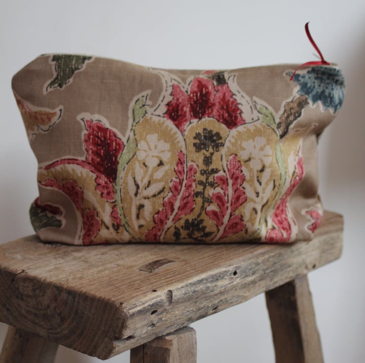 I found this fabric in an antiques shop a few years ago as I knew it would make fabulous shopping bags. I had some little remnants leftover and squirrelled them away until I could think of a way to use them. A couple of weeks ago I needed a birthday present for an old school friend and trialled a similar make-up bag. She was thrilled with it and so I decided to stitch a little batch of them using up other remnants.