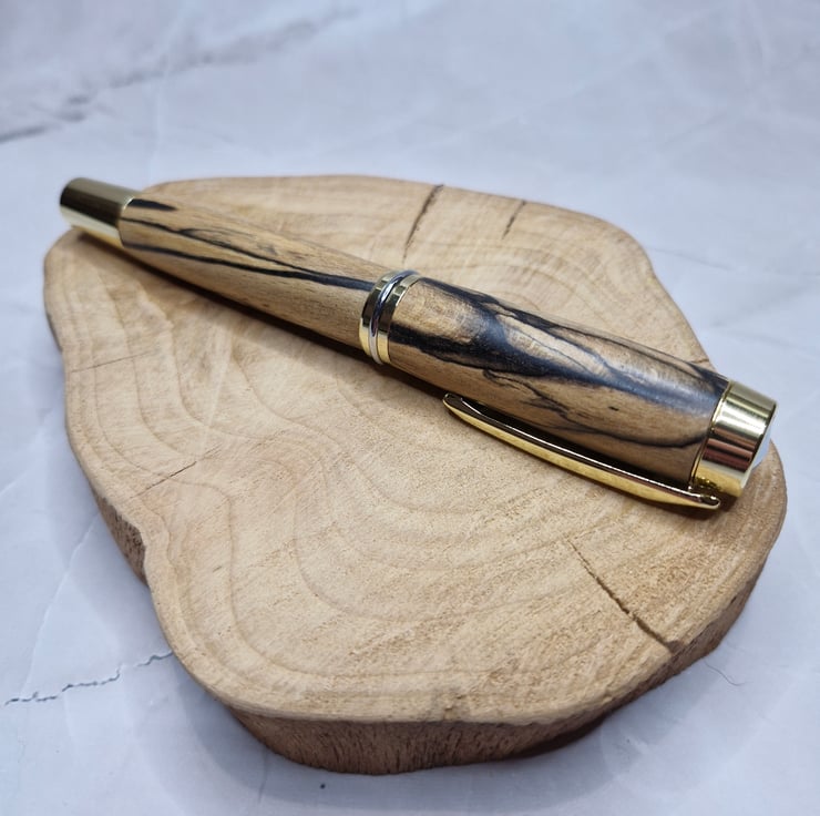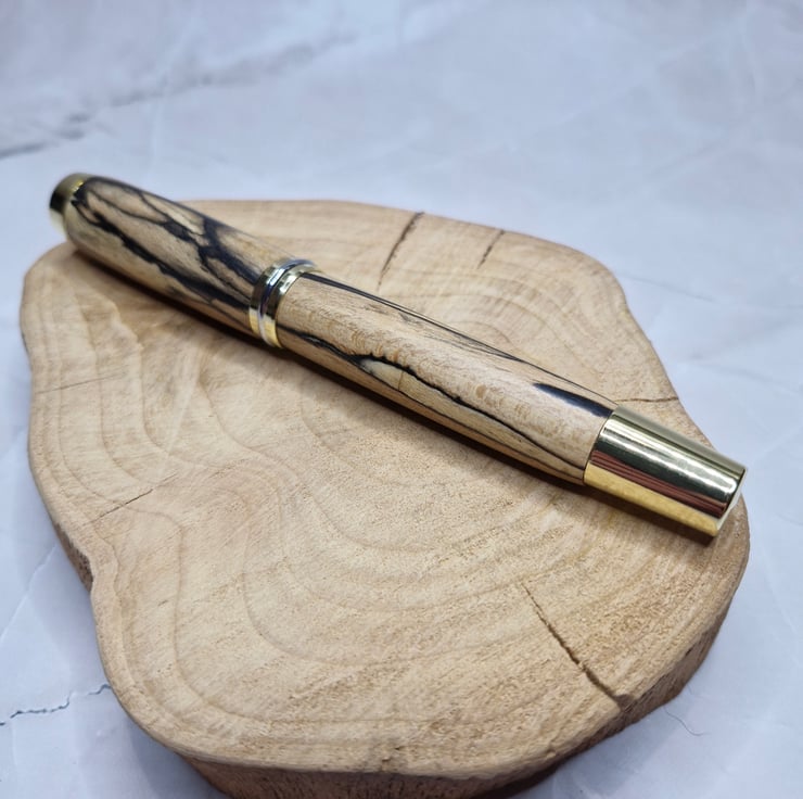 This hand turned wooden pen was created from beautiful Spalted Beech in our workshop in Aberdeenshire.
