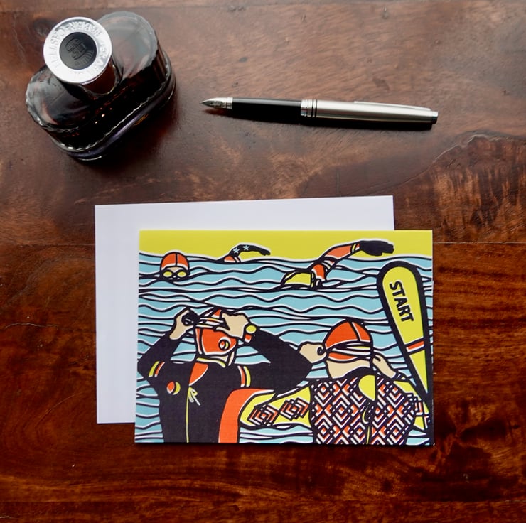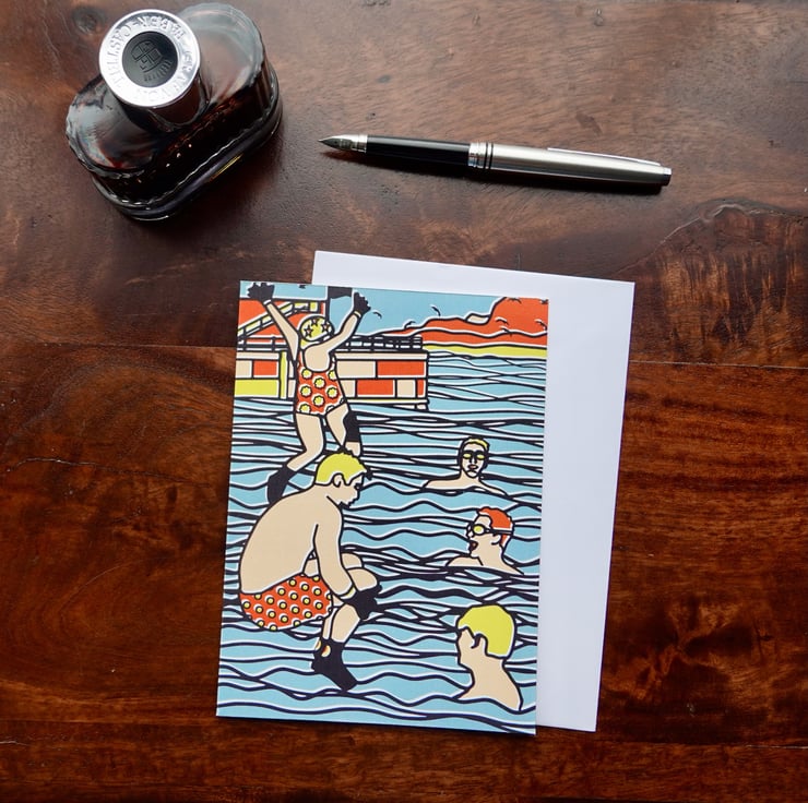I am a wild swimmer, and I see a lot of swim-themed offerings that mainly feature women so I have addressed that by creating greeting cards for male devotees of this popular sport.