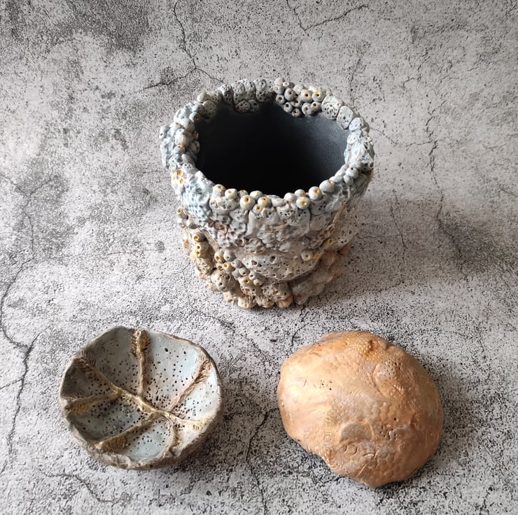 If you are looking for a truly unique handmade ceramic gift to accent your beach house decor, look no further! My little fossil inspired shallow clay bowl is extremely tactile, with external impressions from real coral and ammonite fossils and little internal clay sea flora fronds!