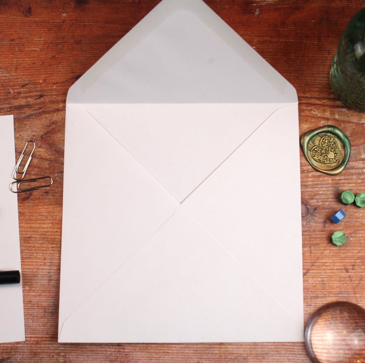 Square shape 148mm x 148mm with matching recycled white envelopes. Sent out plastic free.