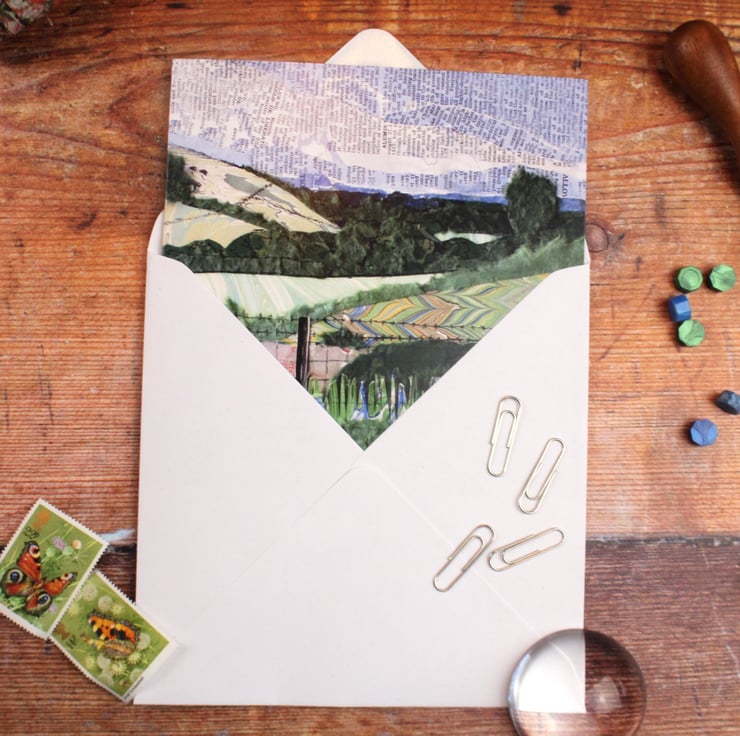 This listing is for a beautiful printed greetings or note card featuring on of my collages of the Lincolnshire countryside.