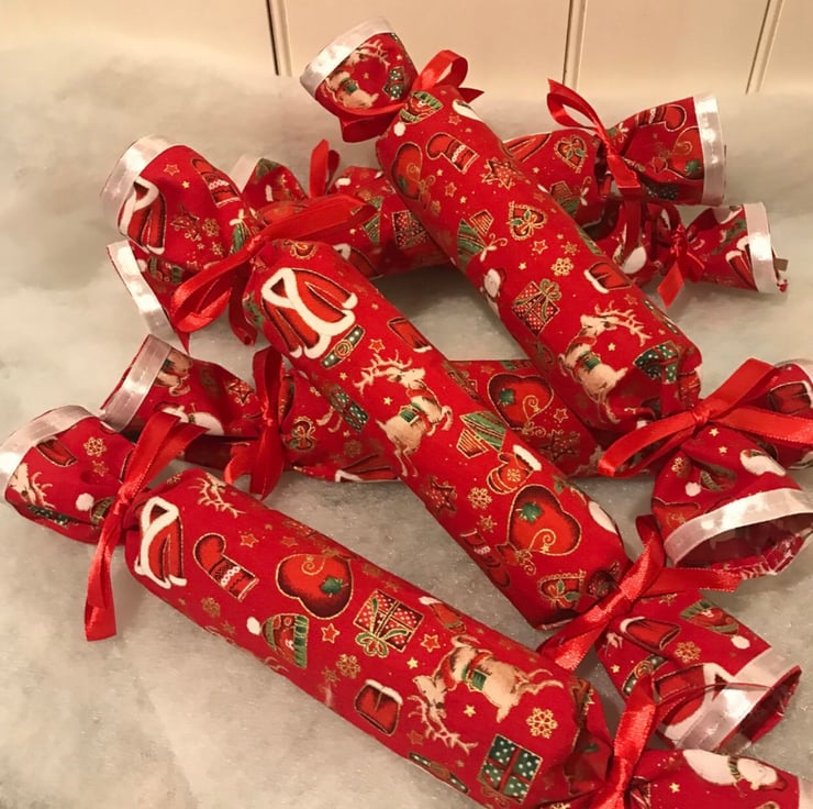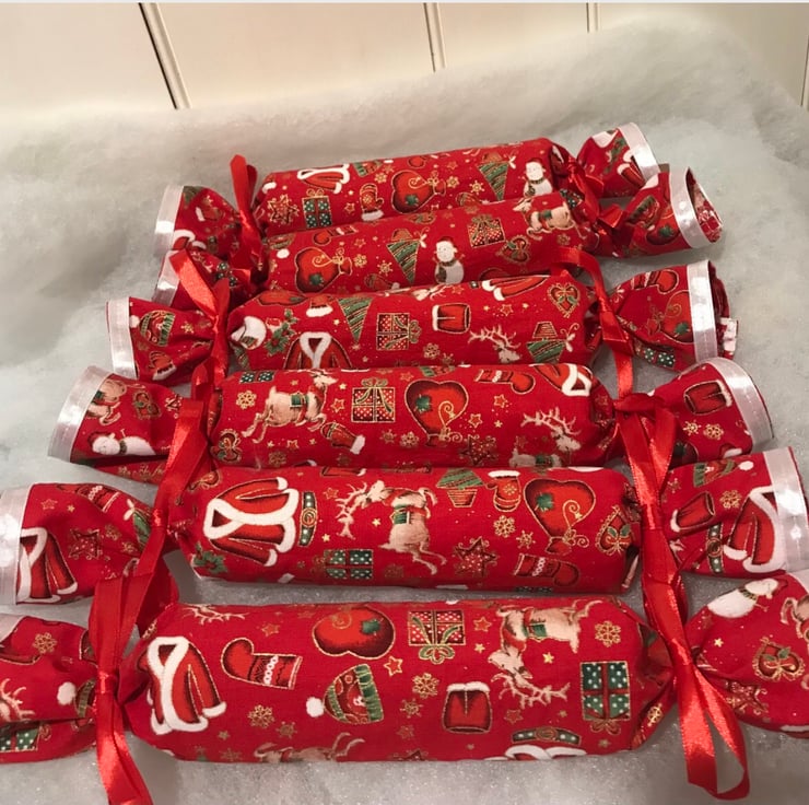 These attractive reusable fabric Christmas crackers are perfect for your Christmas dinner table and such a good idea to save on paper waste .