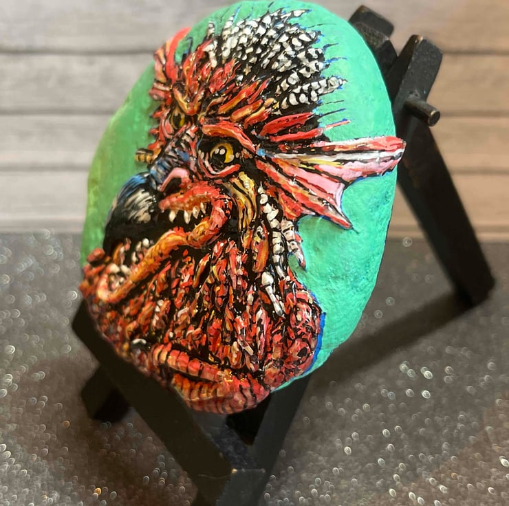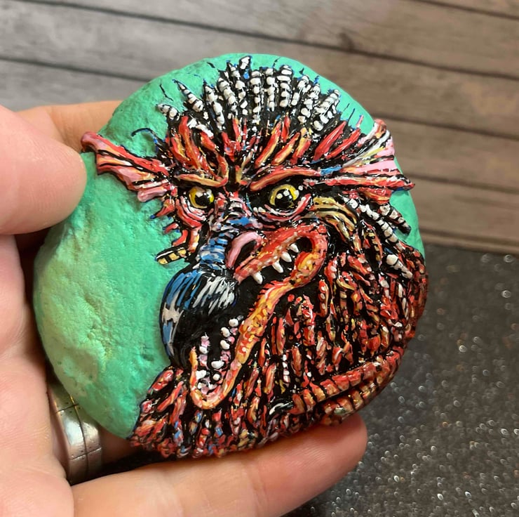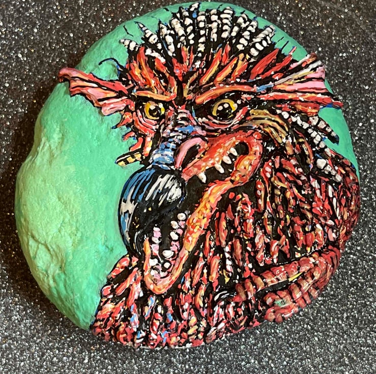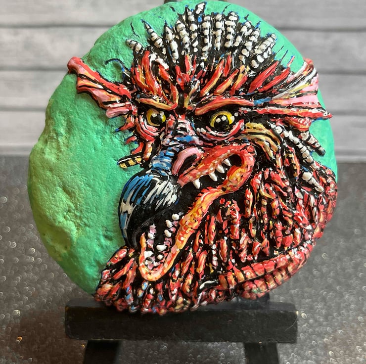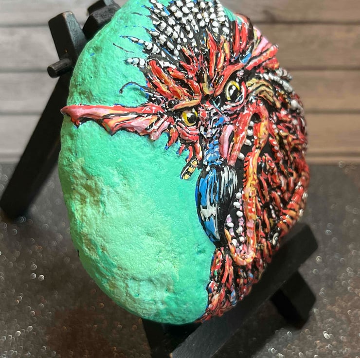 Hand painted and part sculpted Griffin (Mythical Beasts) stone in acrylic and 3D Pearl effects