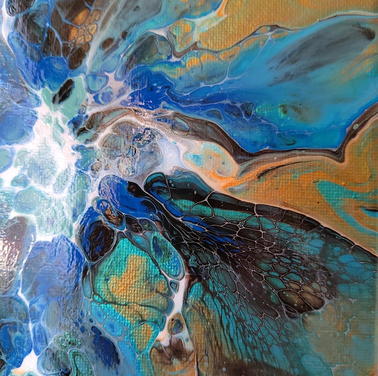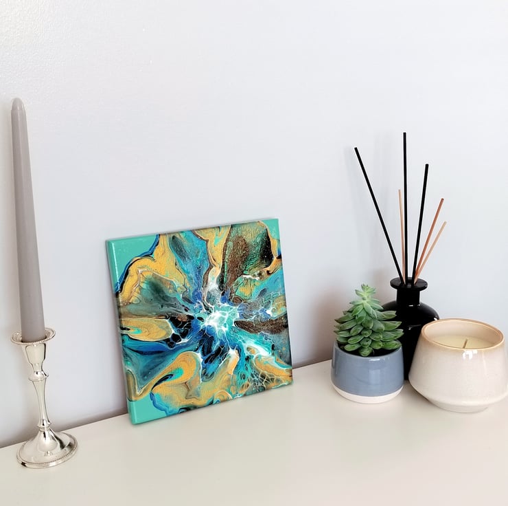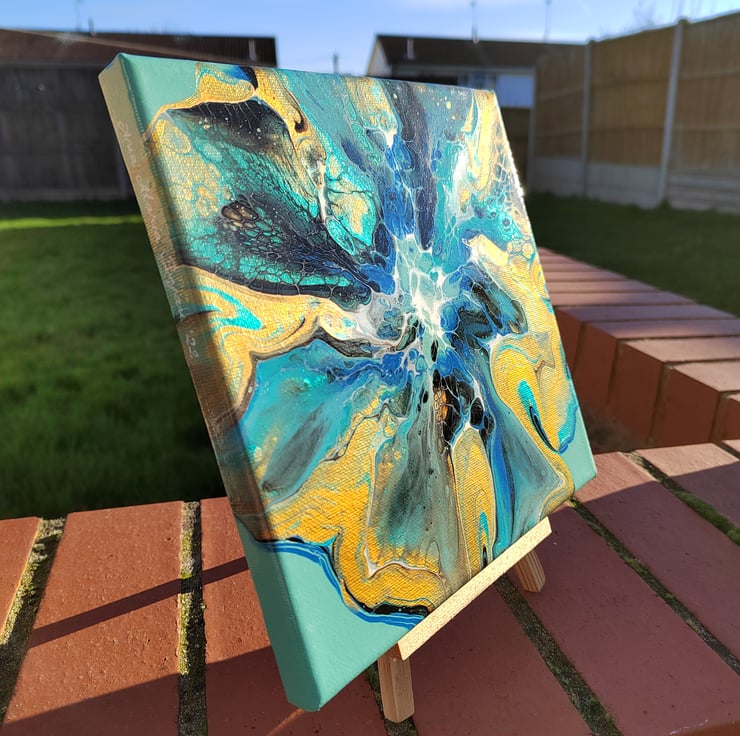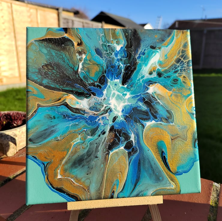 Original 20x20cm Blue Acrylic Abstract Flower Acrylic Painting Fluid Art - Wall Art, Perfect for Home or Office Decor.