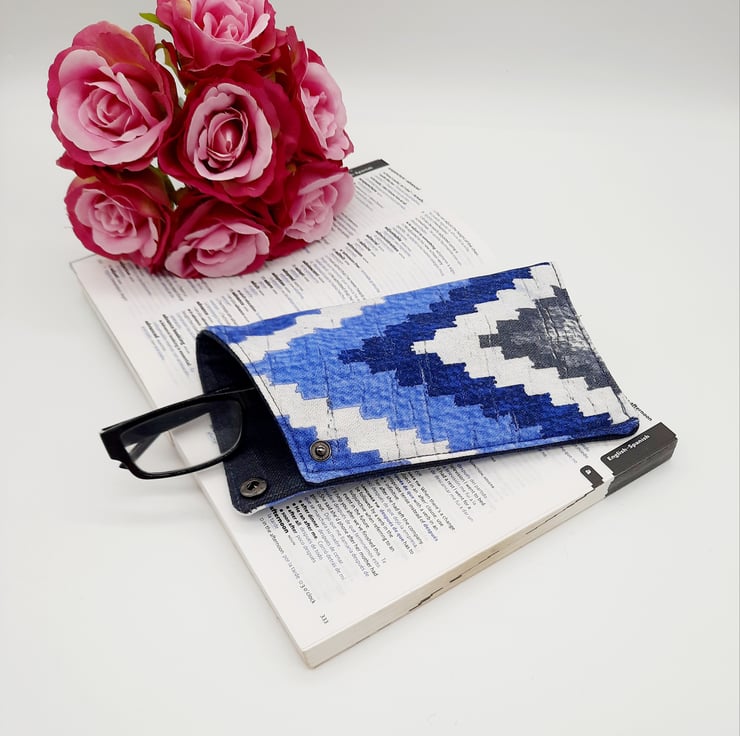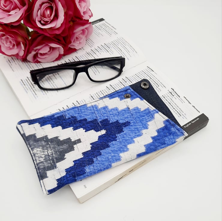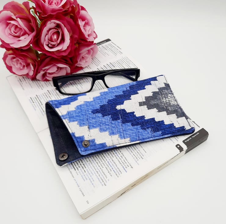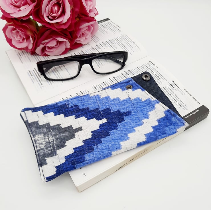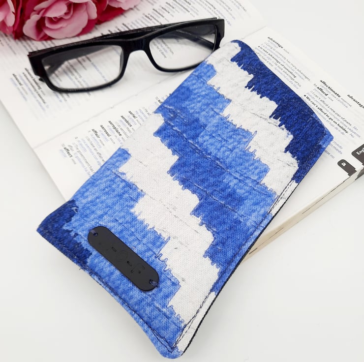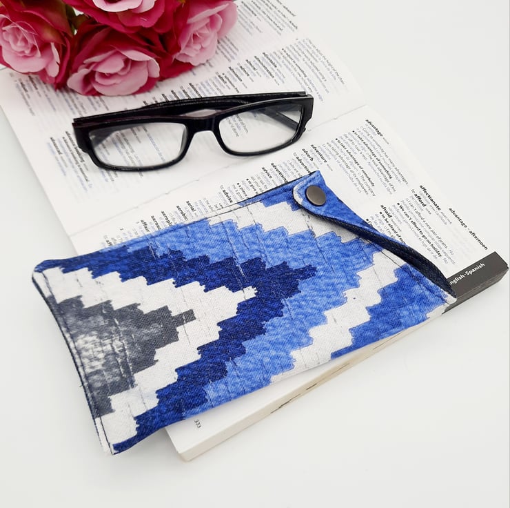 This eye catching Blue and white patterned glasses case has a interliner giving it extra padding.