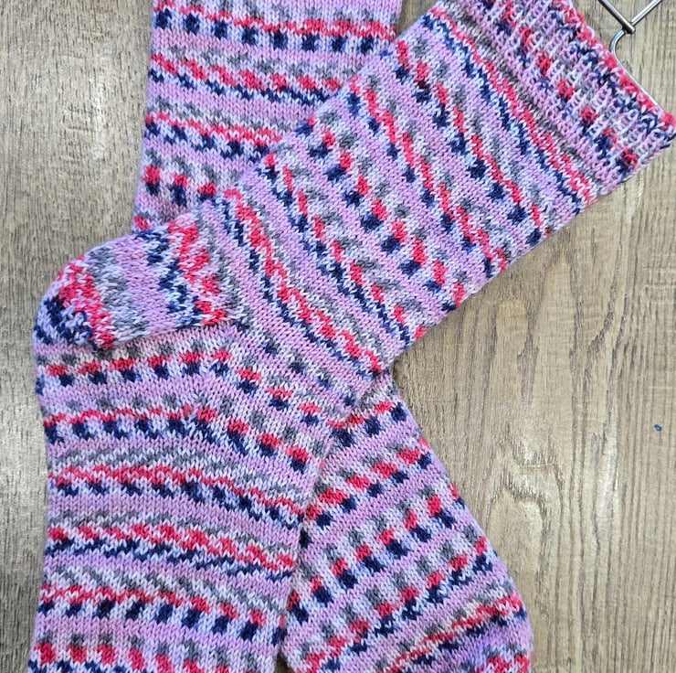 Hand knitted Boot Socks. Size 7-9. Berry Medley