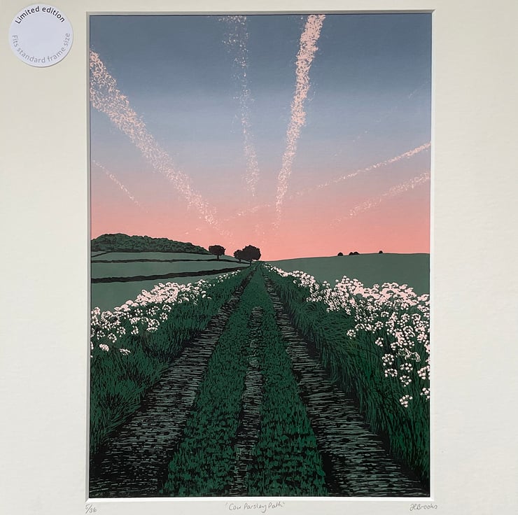 A hand-pulled screen-print called ‘Cow Parsley Lane’.