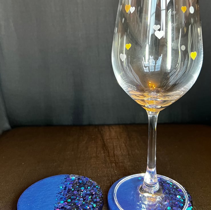 Beautiful set of 2 circular coasters made with Epoxy resin.(wine glasses not included)