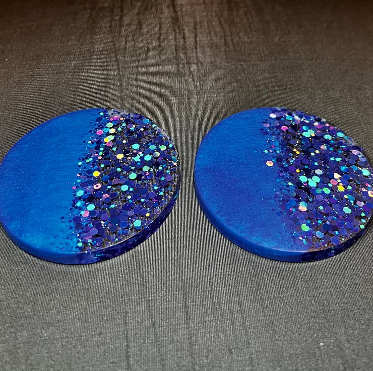 Coasters are half dark blue mica powder and half clear with dark blue glitter.