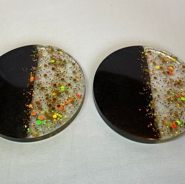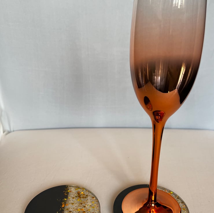 Beautiful set of 2 circular coasters made with Epoxy resin.(wine glasses not included)