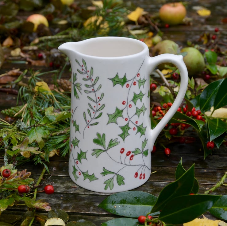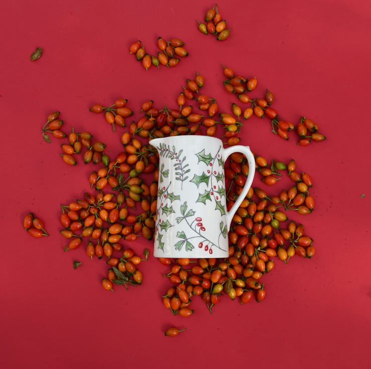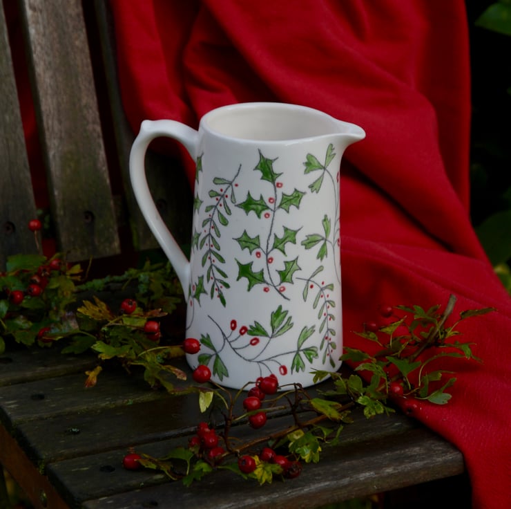 This hand painted Winter Berries Farmhouse Jug would look fabulous on your Christmas table, perfect for water, brandy sauce or as a vase for a small posy of flowers.