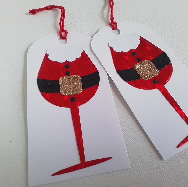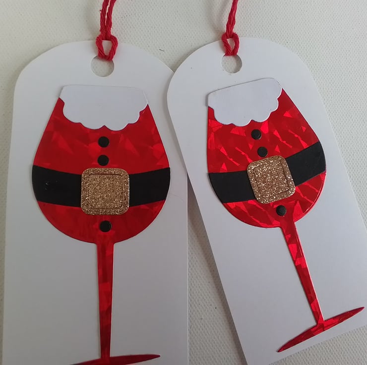 A pack of 2 gift tags with a festive glass on the front and a red co-ordinating string attached.