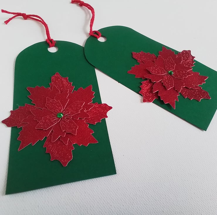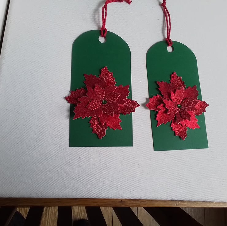 A pack of 2 poinsettia Christmas gift tags.