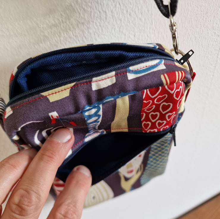 Cute, handmade "essentials" crossbody bag, with adjustable strap.