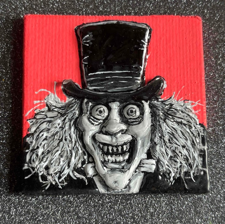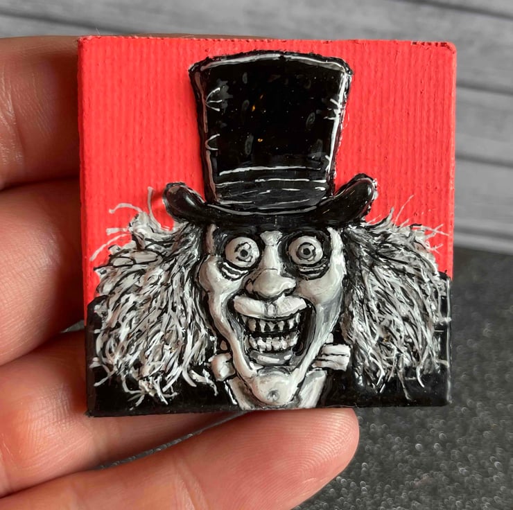 Hand painted and part sculpted Professor Burke (London After Midnight) Lon Chaney mini magnetic canvas in acrylic, 3D Pearl effects (Craft resin)