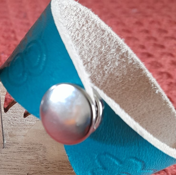 Turquoise Leather De-Bossed Cuff, Earrings and Necklace Set.