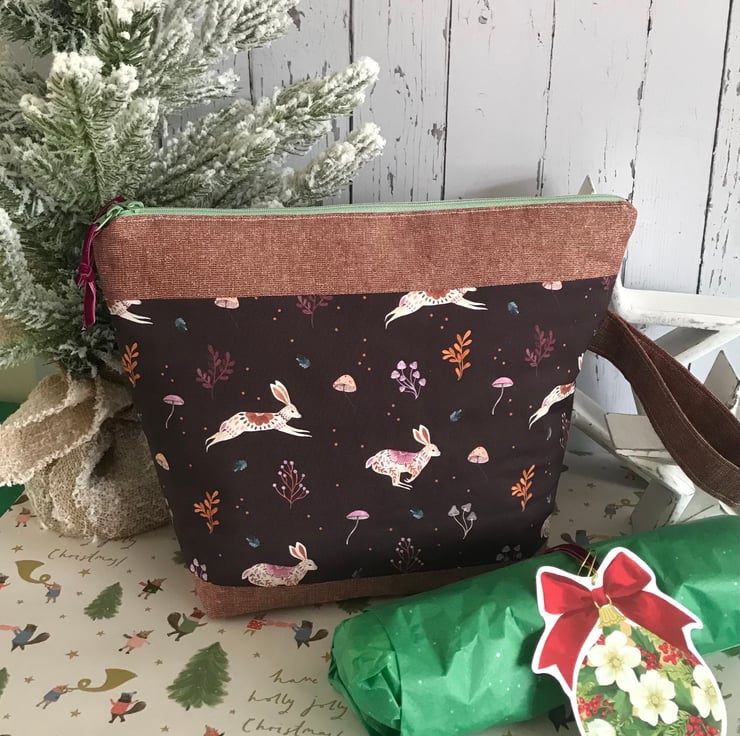 This is zippy project bag and has a lobster clasp inside to hang your bits and bobs on.
