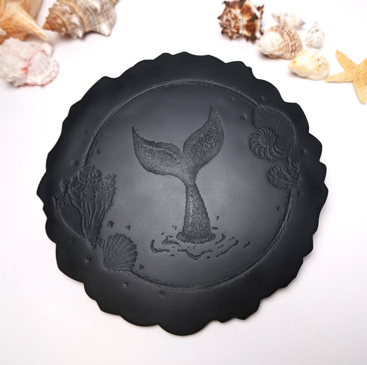 The inspiration behind this decorative piece comes from the serenity and beauty of the ocean. The engraved whale tail symbolizes strength and grace, while the seashells capture the natural treasures found along the shore. The frilly, round design is a nod to the soft waves and delicate sea patterns, bringing a sense of calm and coastal charm into your home. This piece was crafted to evoke memories of peaceful seaside moments, blending nature’s artistry with handmade craftsmanship.