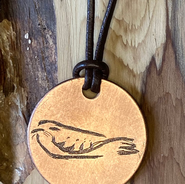 Acid etched copper pendant necklace with Roosting Nightjar design.