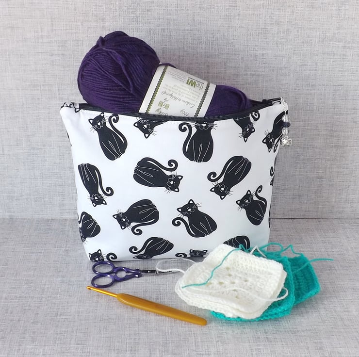 This bag has multiple uses as a cosmetic bag, storage for hair accessories or jewellery, storage for sewing notions, crochet or knitting notions, or even as a small project bag.