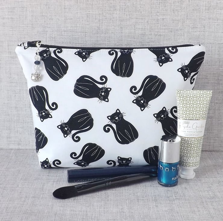 A large sized zipped pouch, cosmetic bag, made from 100% cotton fabric.