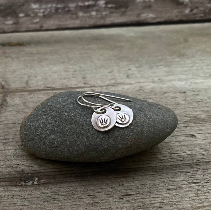 Little nuggets of recycled sterling silver have been hand forged with a stamped design added using traditional silversmithing techniques. Oxidised to enhance the design and add to its rustic elements.