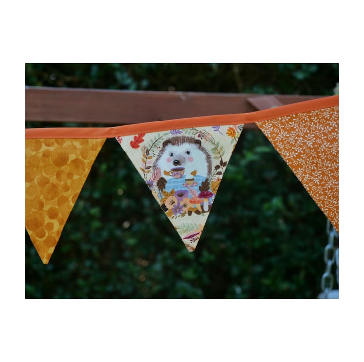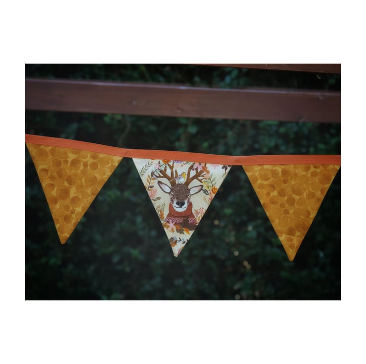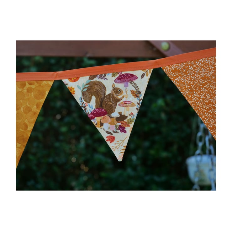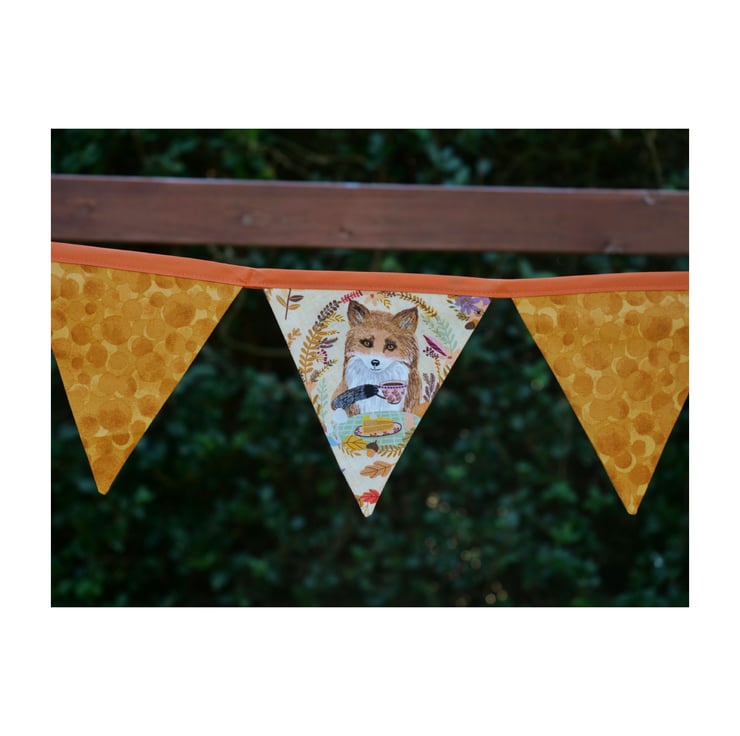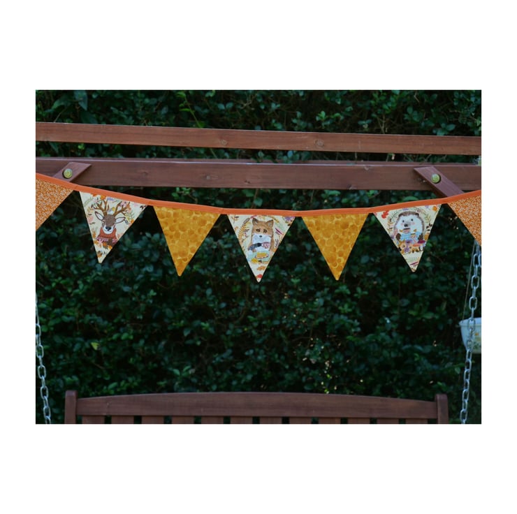 That autumn feeling is now in the air. Why not to decorate your house with this cute bunting. 9 double sided panels. 190 cm long from one side to the other. The flags are approx 14 cm long and 14 cm wide at the top. It doesn’t include the cat :) she’s only a model.