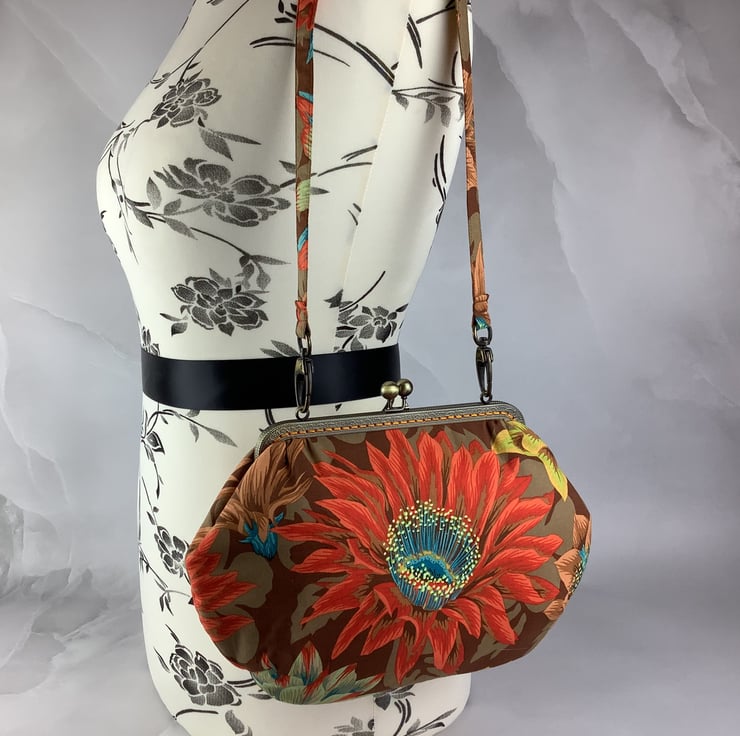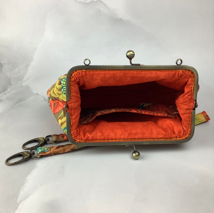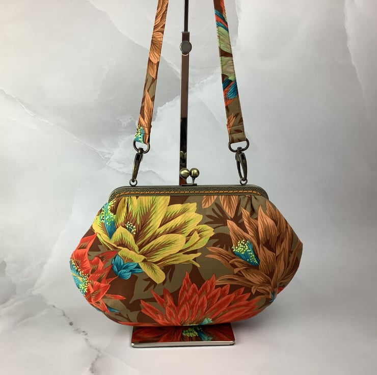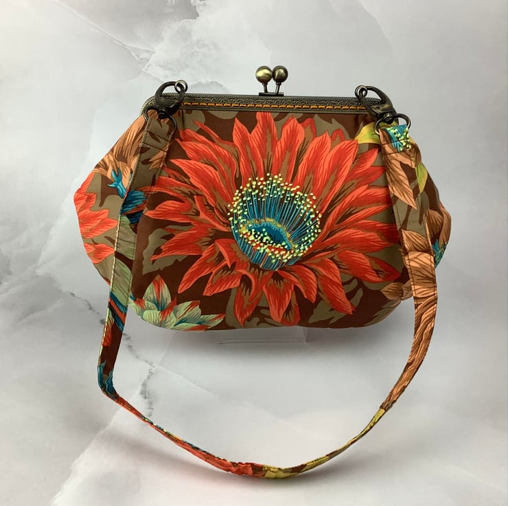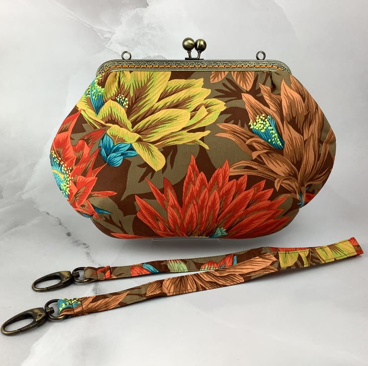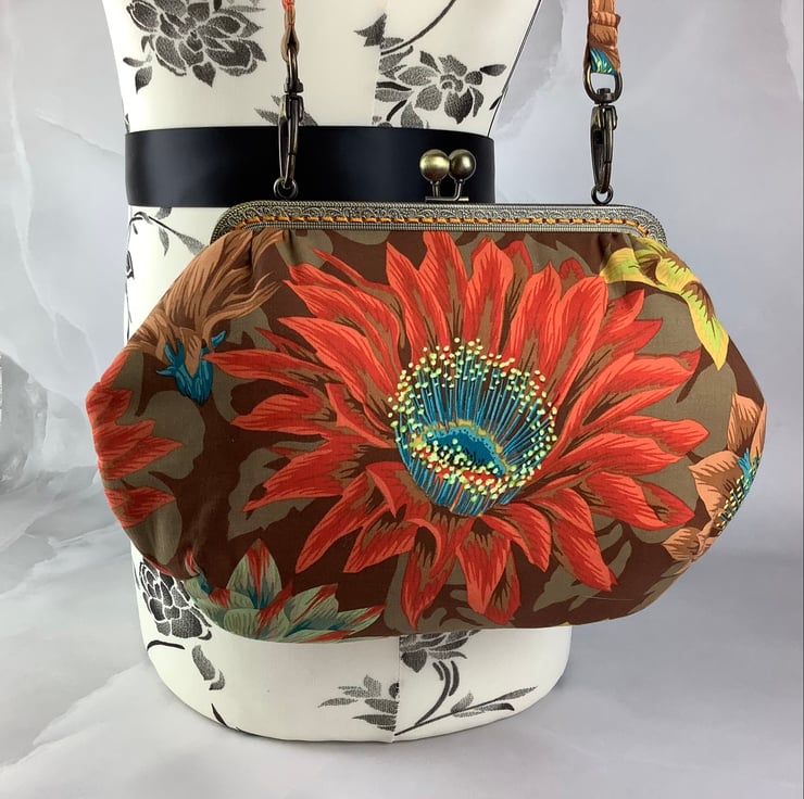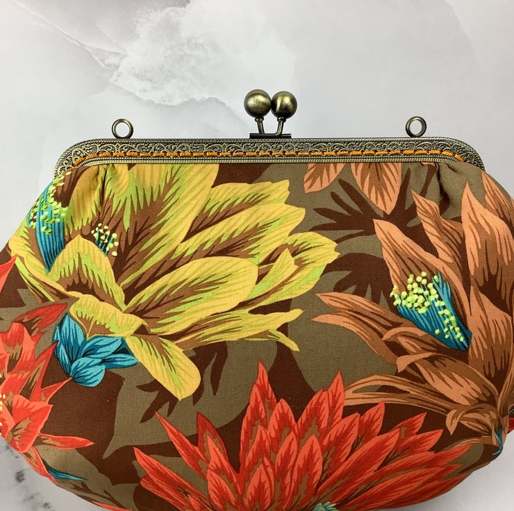 Floral medium clutch bag in a stunning cactus flowers cotton fabric with an orange cotton lining.