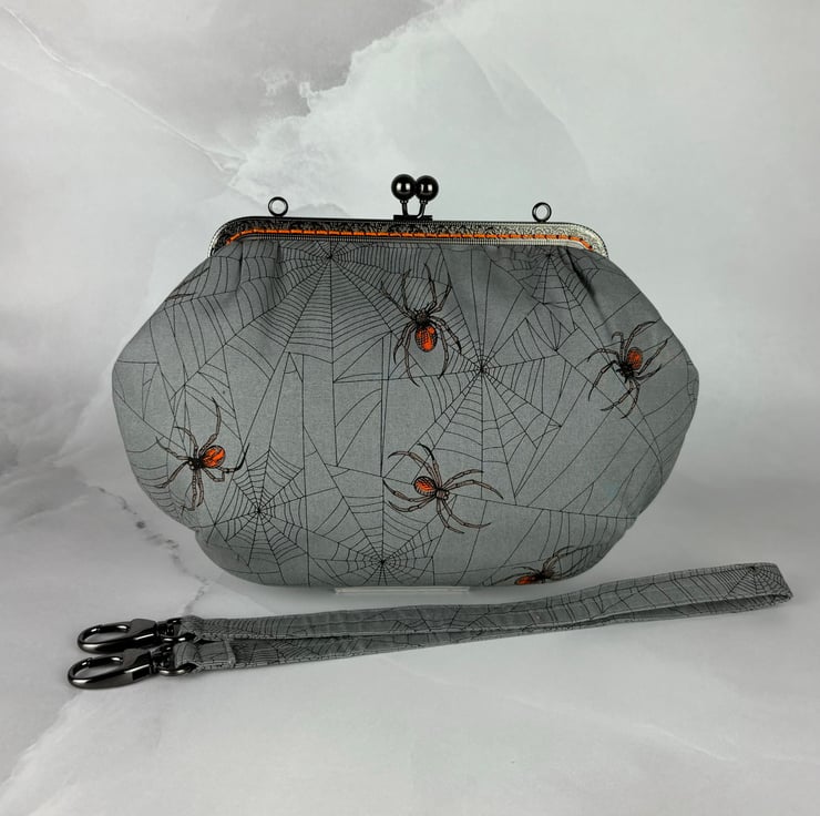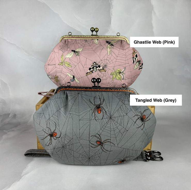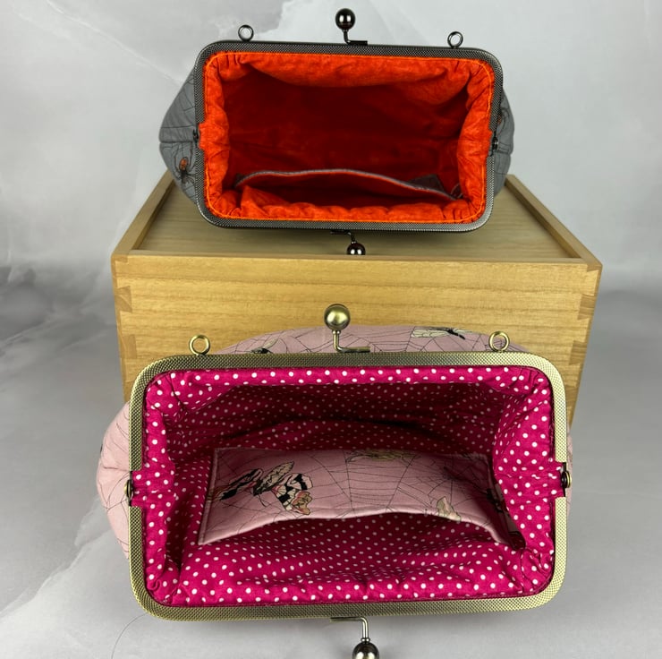Handmade clutch bags with a kiss clasp frame in a choice of stunning gothic inspired cotton fabrics.