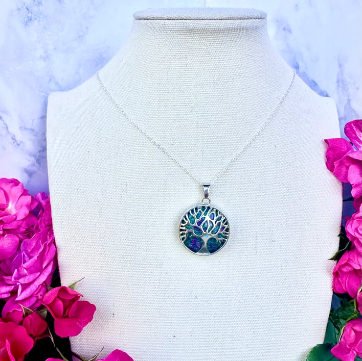 Beautiful and simple, this stunning Epidote crystal is set in a silver plated tree of life setting. The pendant is hung on a sterling silver 18" chain.