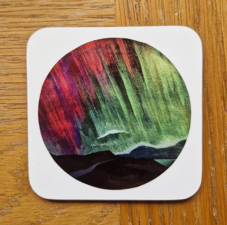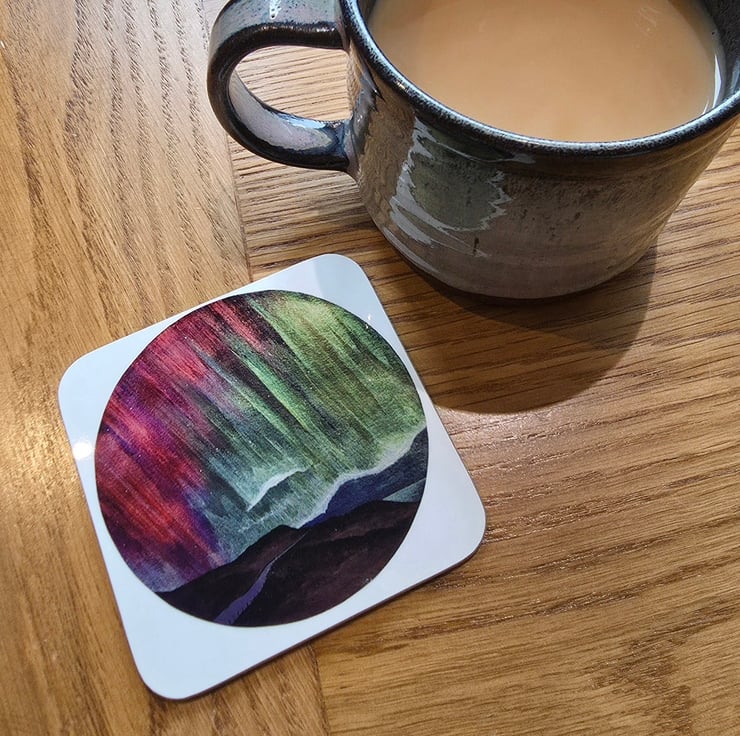 A 9cm x 9cm coaster, printed with an original artwork by Hannah MacIver.