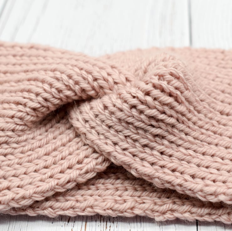 Knitted in beautifully soft cashmerino blend yarn. This cosy turban style headband is perfect to keep your ears warm on chilly autumnal walks