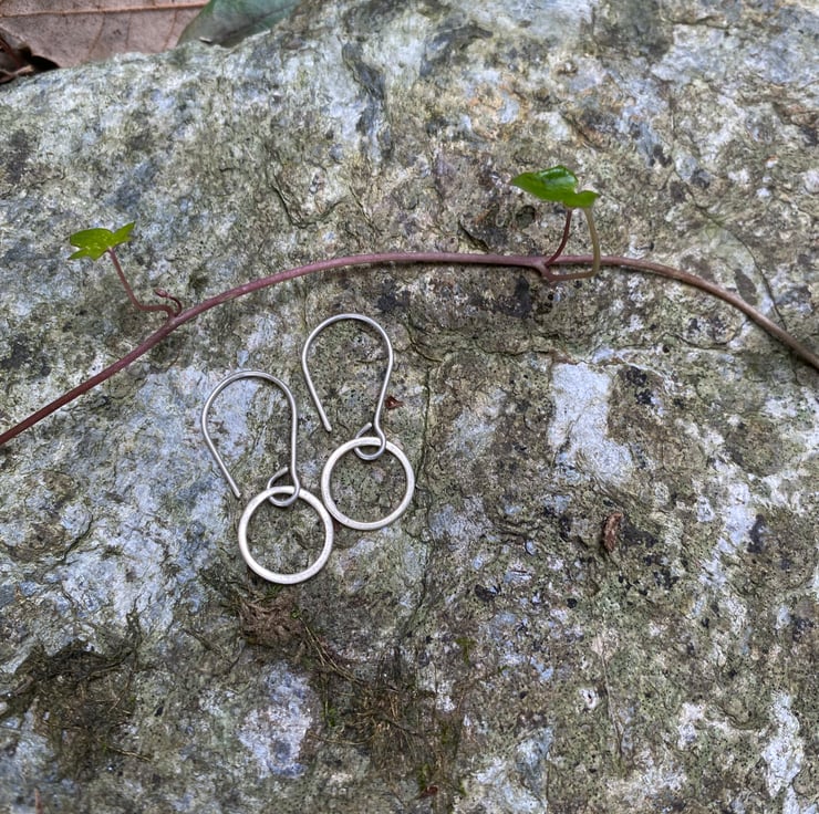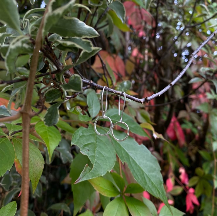 These little dangly hoops are handmade from recycled sterling silver, using traditional silversmithing techniques.