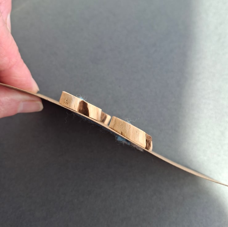 Each button is around 3/4" - 7/8" across and 1/4" thick and has been cut from a single piece of driftwood before being sanded and having holes drilled.