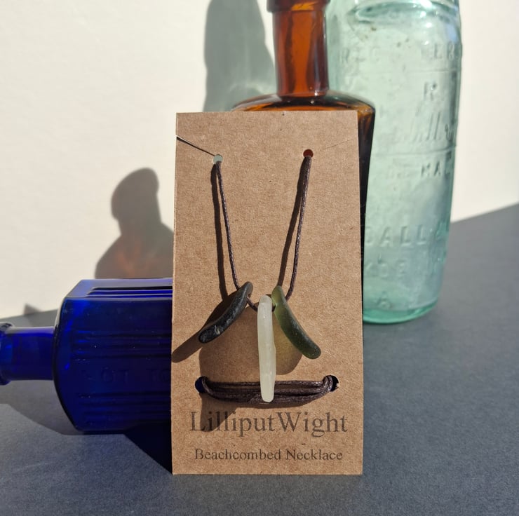 All of the sea glass used in my work is collected from the beaches close to my home on the Isle of Wight. The glass is washed and dried before being worked. It is finished with a little baby oil to highlight the glass colour.