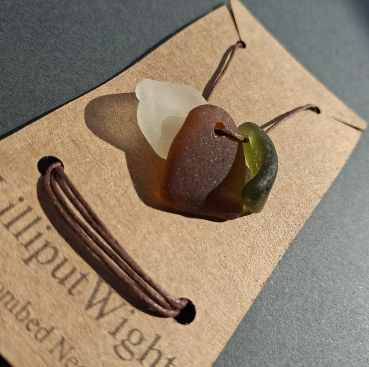 All of the sea glass used in my work is collected from the beaches close to my home on the Isle of Wight. The glass is washed and dried before being worked. It is finished with a little baby oil to highlight the glass colour.